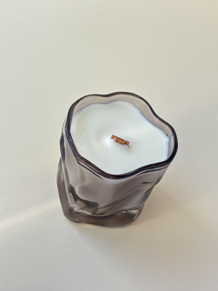 La vela se presenta en un espectacular recipiente de cristal de diseño irregular, convirtiéndola en una pieza decorativa moderna y única, ideal para cualquier rincón. El detalle de la mecha de madera añade un suave sonido crepitante y natural que complementa la relajación. Si buscas velas de soja artesanales con un diseño premium y una fragancia inolvidable, esta pieza es la elección perfecta. Adquiere hoy tu vela con olor bambú y cerezo y dale a tu hogar ese toque de exclusividad que se merece.